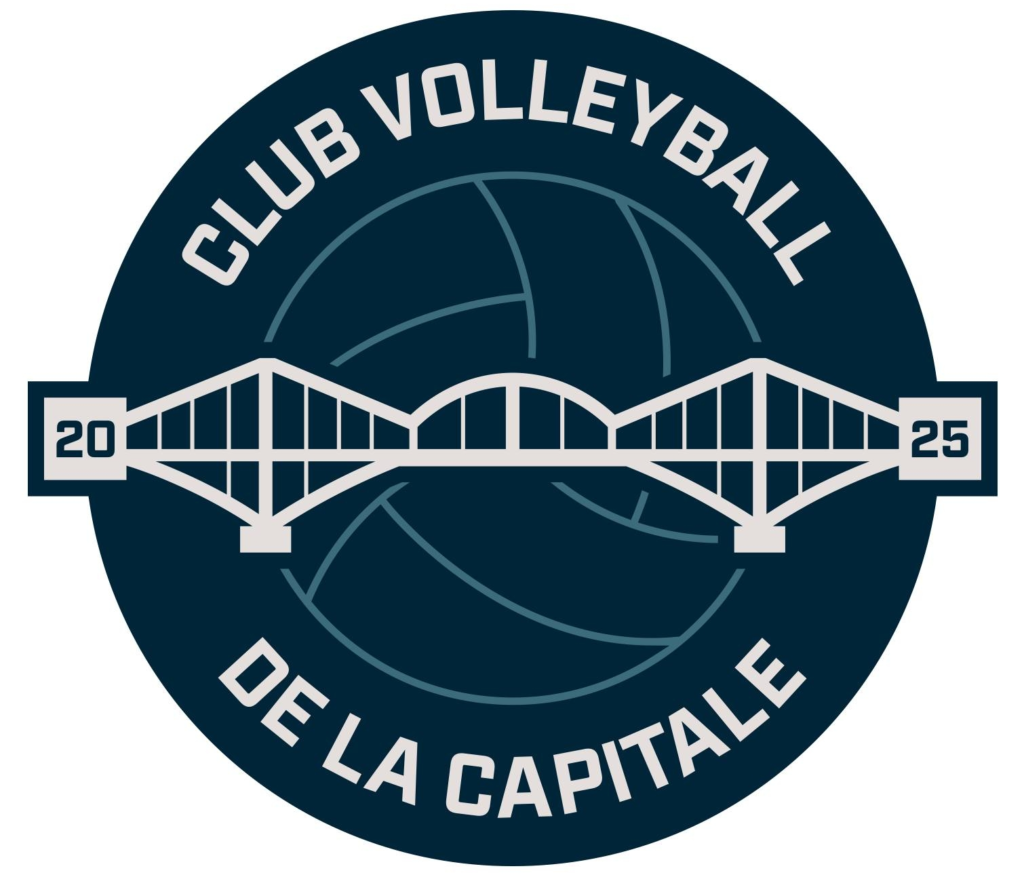 Au cœur du visuel, le pont de Québec, structure emblématique de notre ville, symbolise le lien entre les deux rives, tout comme le volleyball crée un lien entre les athlètes, les équipes, les familles et la communauté.